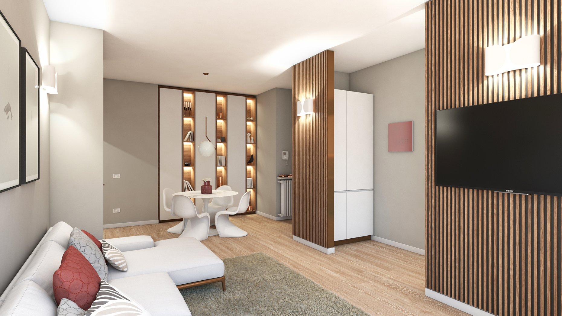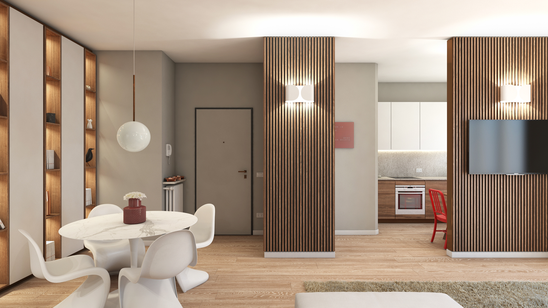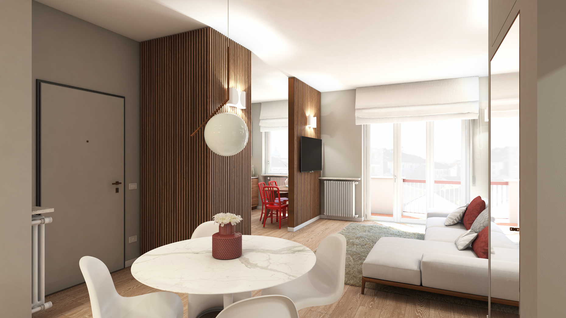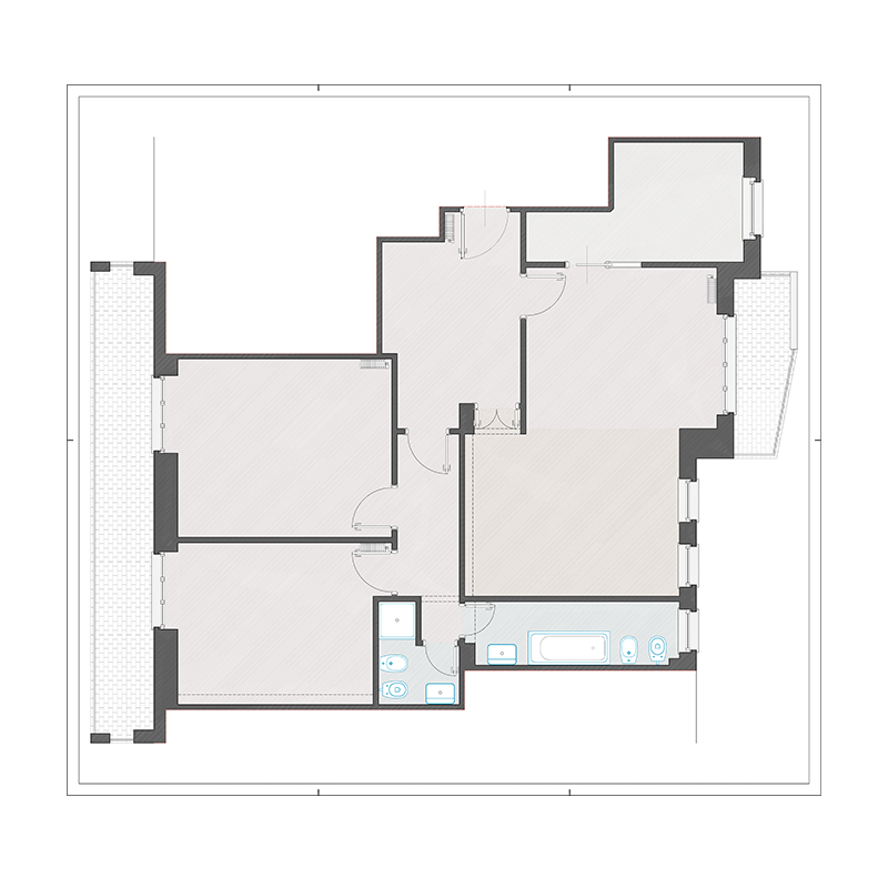 Il progetto di ristrutturazione ha coinvolto la ridefinizione della distribuzione interna e l’aggiornamento delle finiture, con il rifacimento degli impianti elettrico e idrosanitario e la predisposizione dell’impianto di climatizzazione.