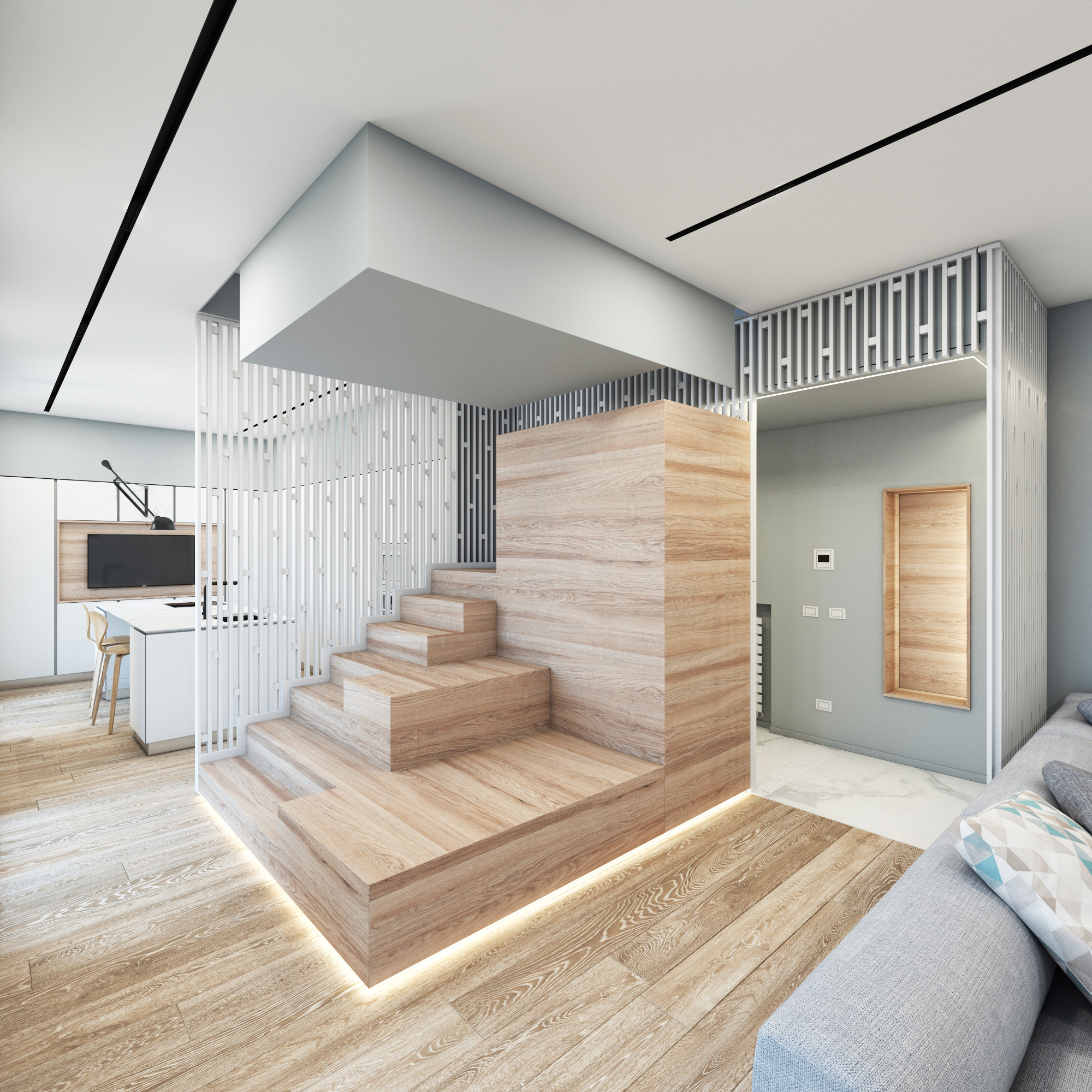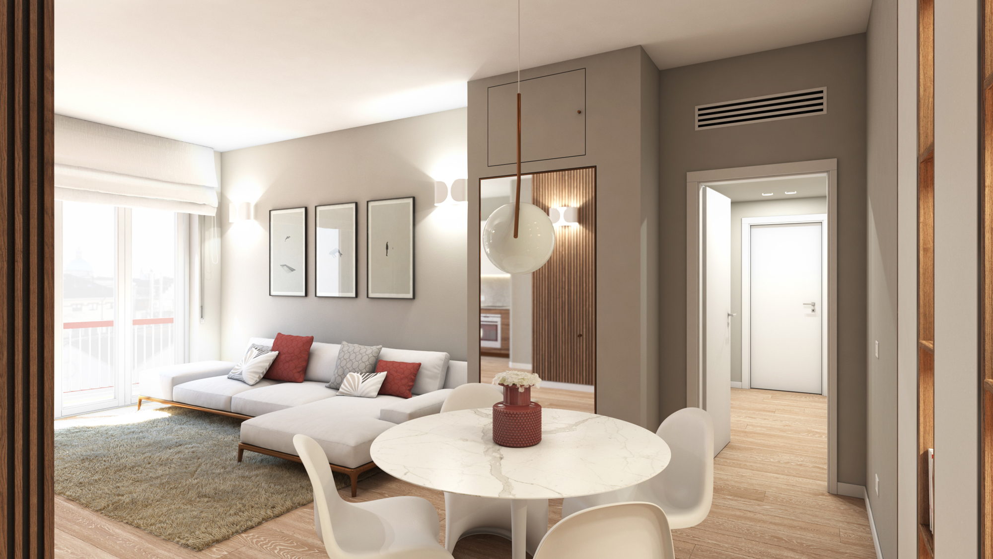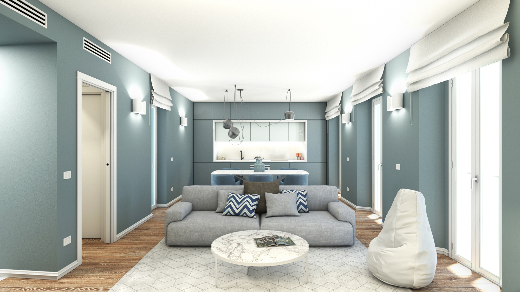 Una gallery dedicata ai render di interni residenziali: ambienti progettati per valorizzare spazi, luce e materiali.